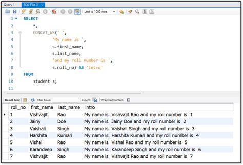 how to concatenate in mysql workbench