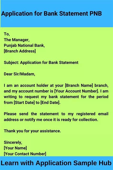 how to write application for bank statement pnb