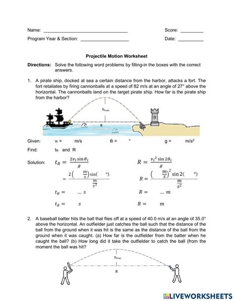 projectile motion word problems worksheet with answers