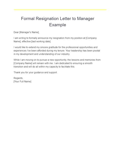 resignation mail to manager examples