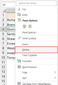 shortcut to delete only selected cells in excel